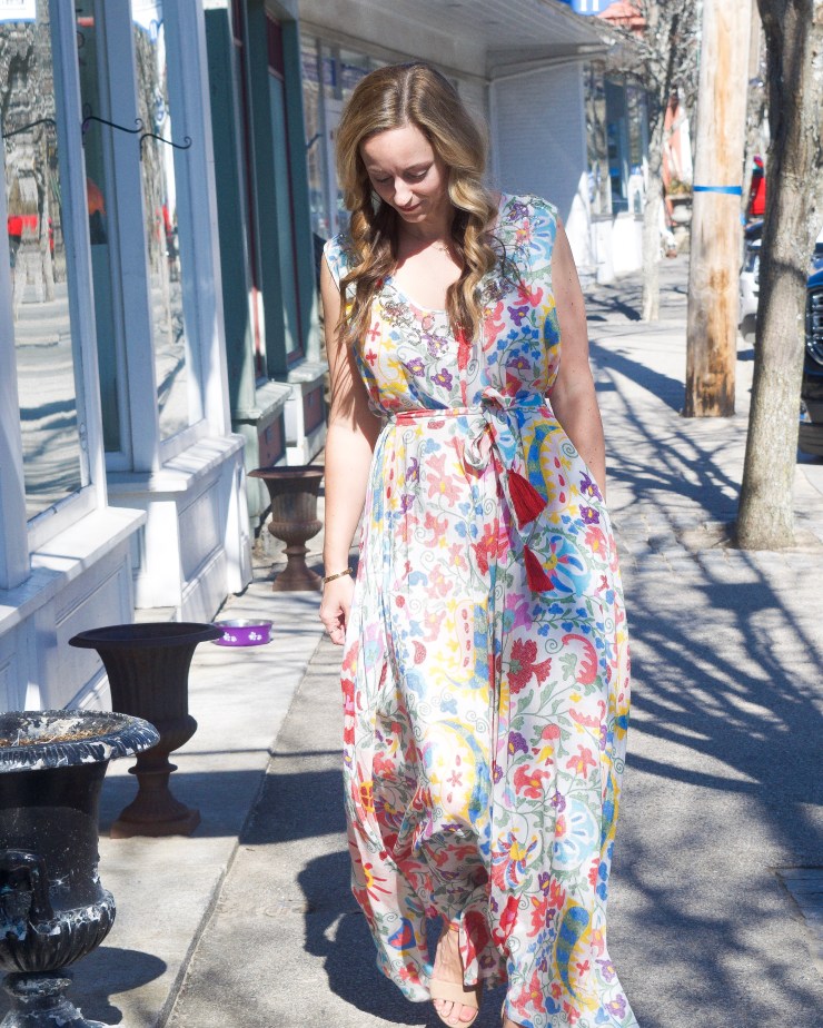 First up is this jumpsuit by Miss June. Yes, it looks like a maxi dress but is actually a wide-leg flowy jumpsuit. It has an adorable tasseled belt and sequin detailing around the neckline – so fabulous! You better believe I snatched this up for an upcoming trip to Bermuda.