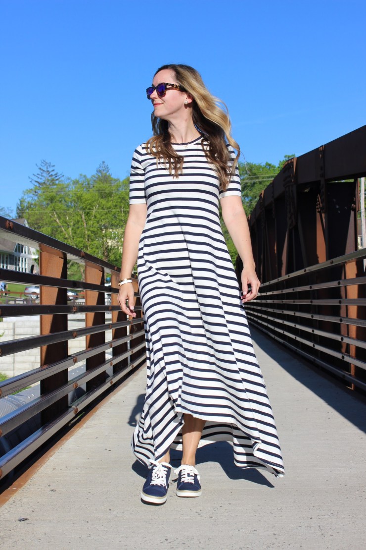 The sneakers are so cute; they have an espadrille-inspired sole, which makes them perfect for summer, and come in six colors. They’re inherently casual but I had fun dressing them up with my maxi dress. Most importantly, they were super comfortable! You can feel the support immediately you put them on. I wear these ridiculous arch-support compression socks every morning when I wake up, and I’m hoping that wearing this shoe will cut down on that. ππ