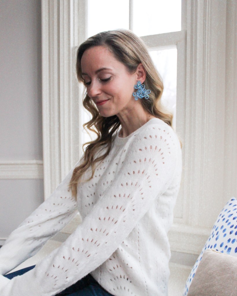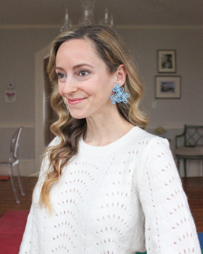Yes, I will wear these year round but I am so excited to pair them with colorful dresses in the warm temps! They just scream summer to me. Stay tuned for those looks. And the earrings also come in white, pink and solid blue. You can match your hydrangea bouquet of any color!