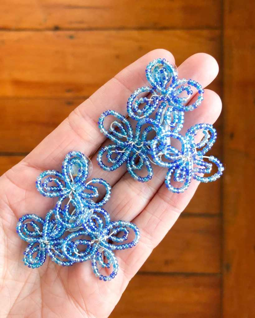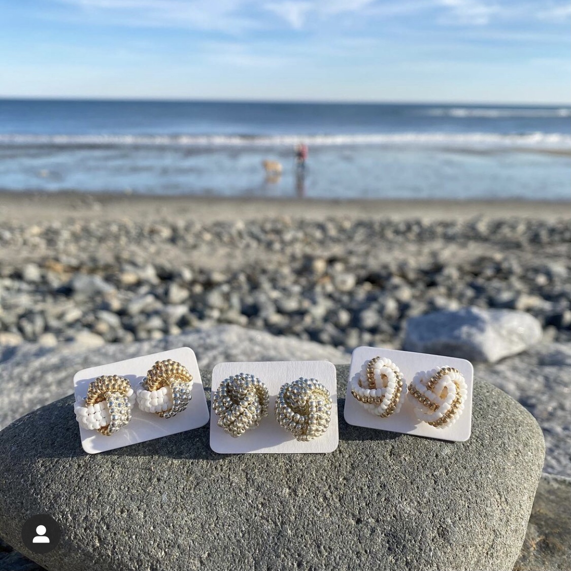 Take a look at these gorgeous earrings! Inspired by hydrangeas, each pair is hand beaded by Roula herself. So pretty! I’m wearing mine while I sit in the sunshine like a cat and dream of summer on the Cape. (Winter, amirite?)