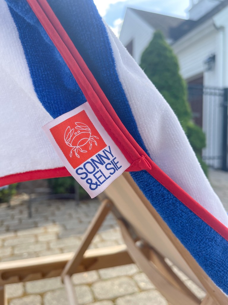 It’s been a hot second! But I am back to spotlight one of my favorite types of brands: a local, woman-owned, small business. The trifecta! Today is all about Sonny & Elsie. I had the pleasure of meeting the creator, Caren, through a mutual friend. She saw a problem – life at the beach was great but where do you put your valuables? – and set out to fix that. Enter, this beach towel.